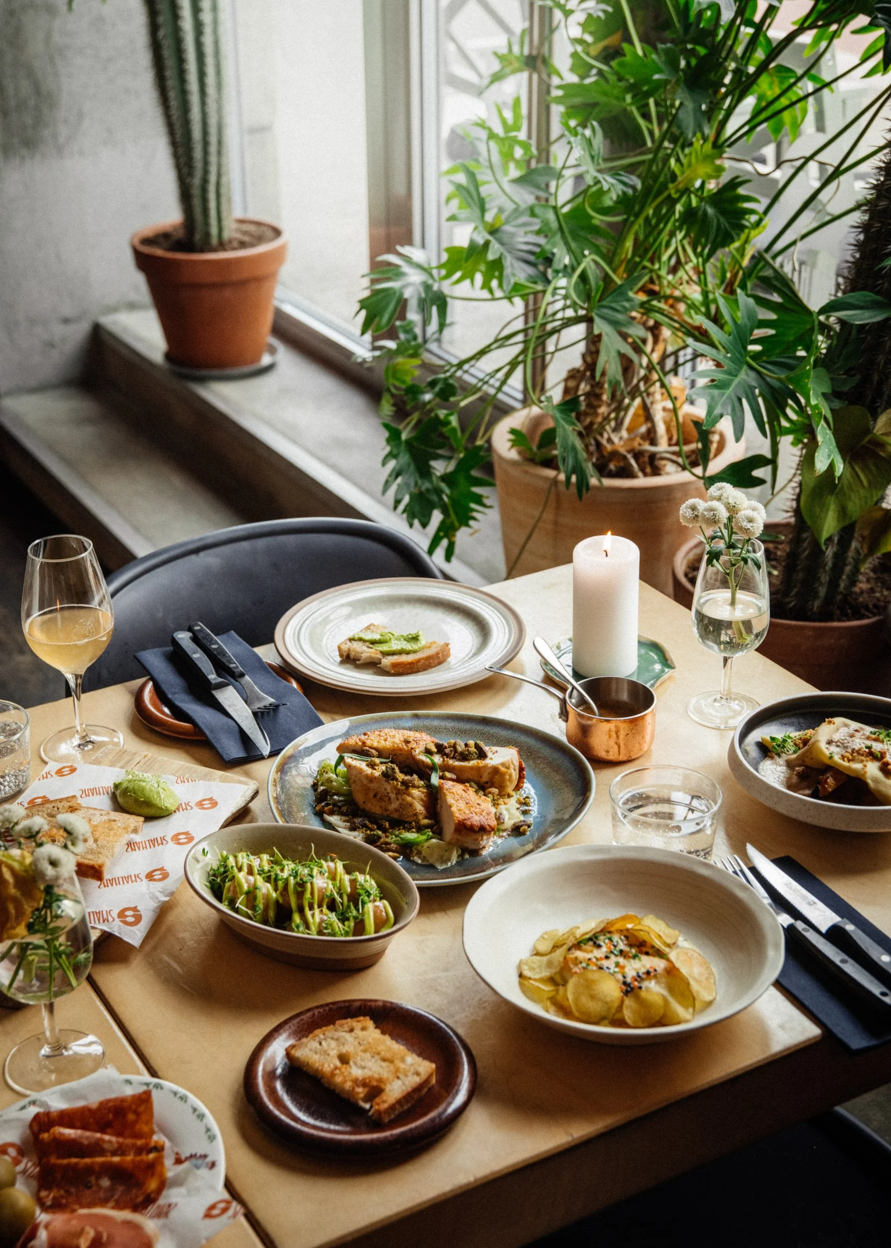 Vi serverer et utvalg av små retter, en varm rett og noe søtt til slutten som kan deles sammen over en god prat.